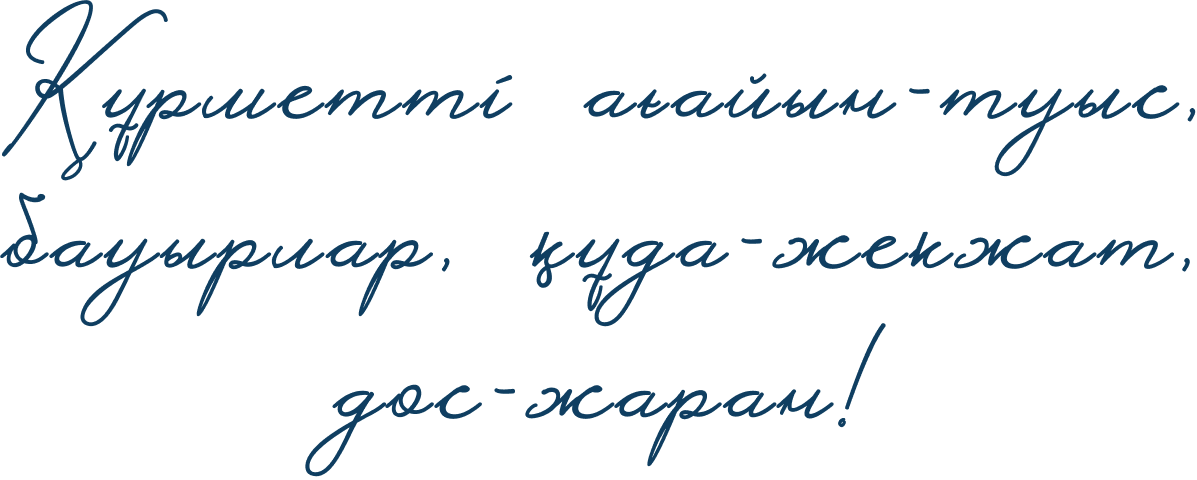 Сіздерді қызымыз Аружанның қыз ұзату тойына арналған ақ дастарханымыздың қонағы болуына шақырамыз