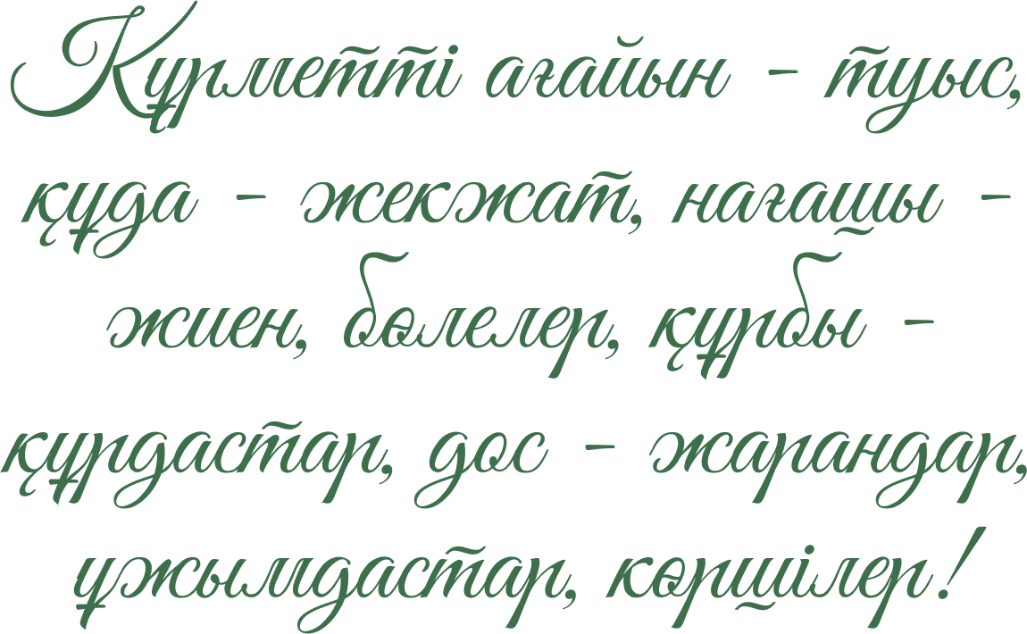 құрметті ағайын-туыс, құда-жекжат, бауырлар, дос жарандар!